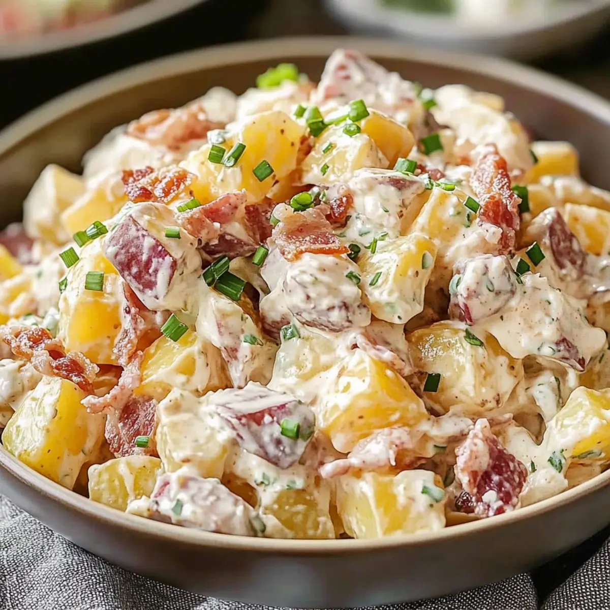 When gathering with friends and family, there’s nothing quite like the conversation starter that is a superb salad. My Loaded Steakhouse Potato Salad brings that classic BBQ twist right to your table, featuring comforting red potatoes wrapped in a creamy dressing, crispy bacon, and sharp cheddar cheese that’s utterly irresistible. The best part? This dish is not only a crowd-pleaser but also gluten-free and customizable, allowing you to easily adapt it to your preferences or dietary needs. Whether you’re firing up the grill or prepping for a picnic, this potato salad will quickly earn its place as a staple at your gatherings. Ready to take your summer potluck to the next level? Let’s dive into how to whip up this flavorful delight!