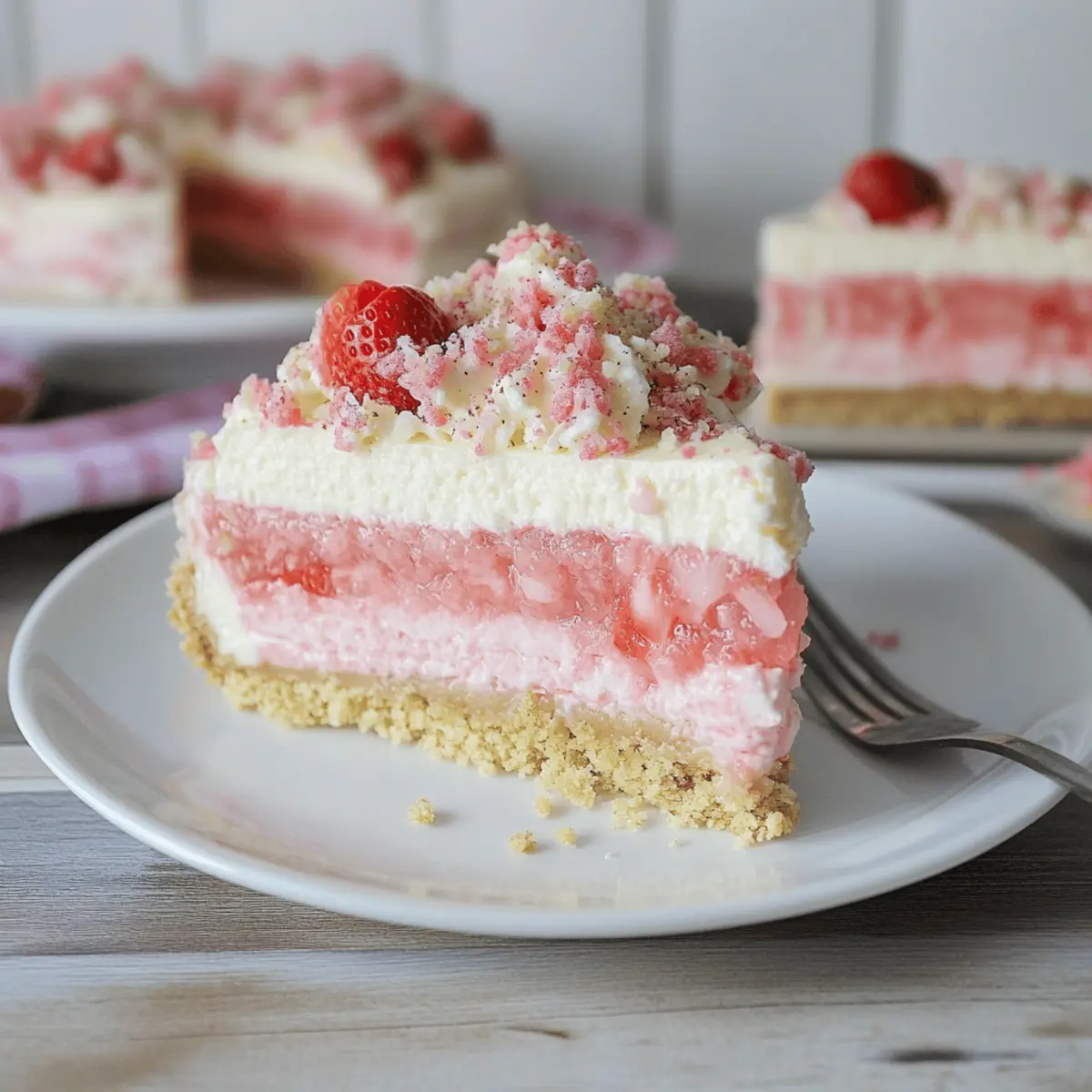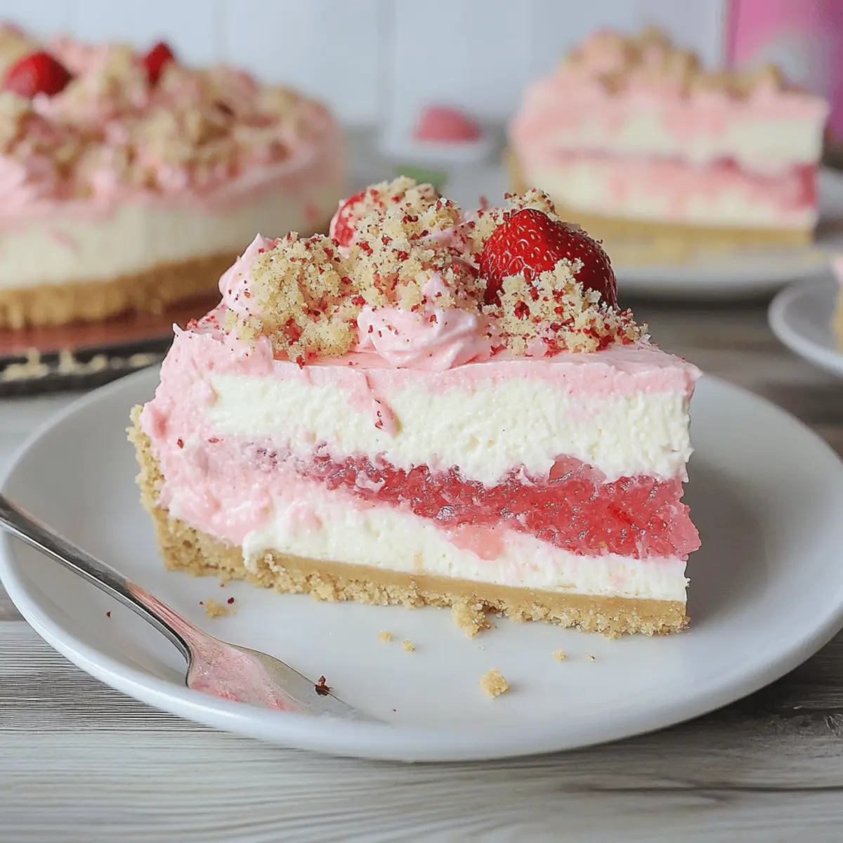 Creamy Strawberry Crunch Cheesecake That's No-Bake and Delicious
