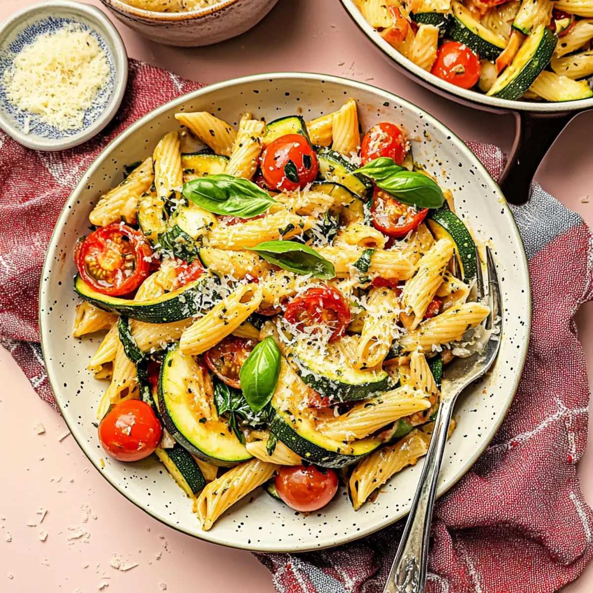 - Return zucchini to skillet and gently fold in the drained pasta with freshly grated Parmesan. Toss until well combined and warm through.