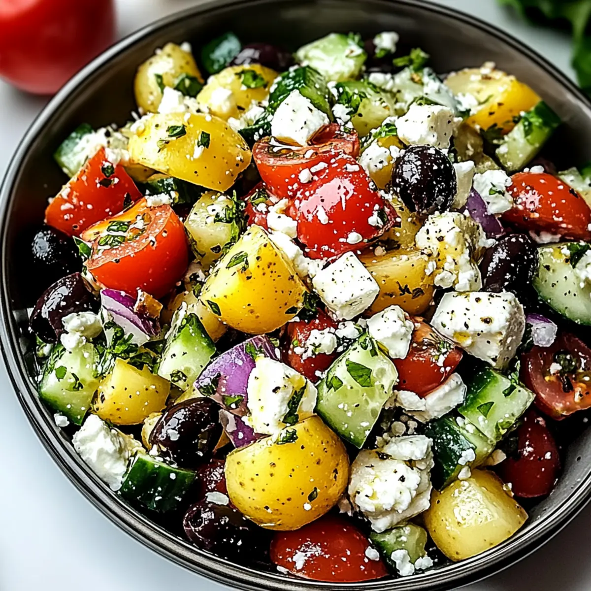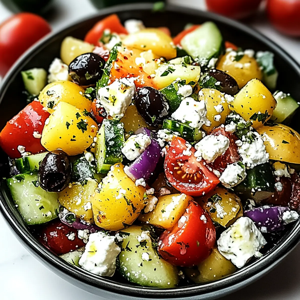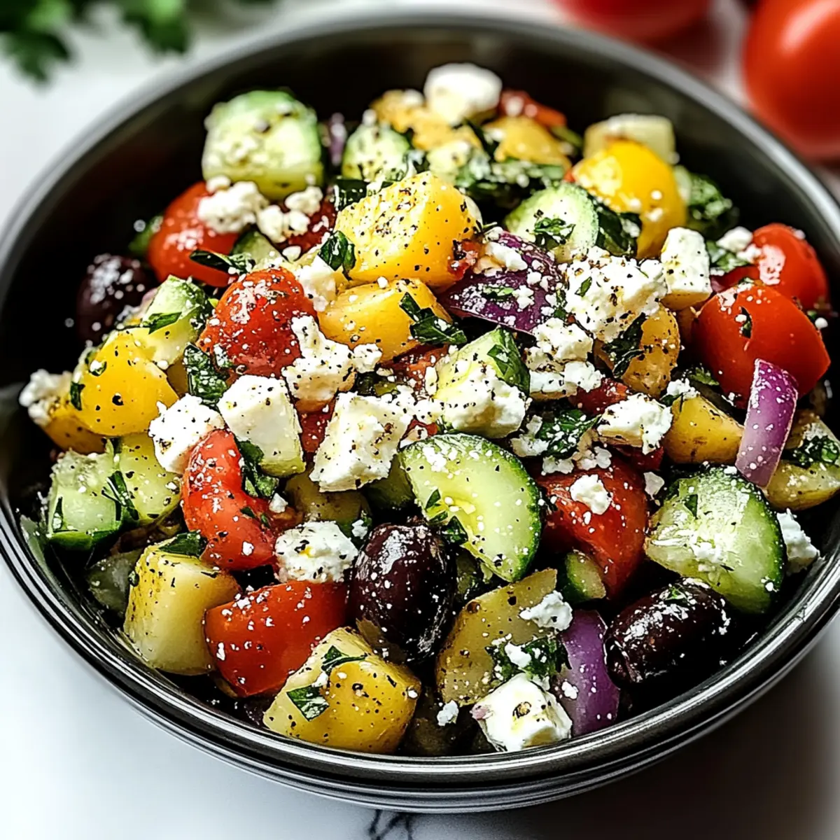 Yes, it can be! This salad is naturally vegetarian, and to make it vegan, simply omit the feta cheese or substitute it with chickpeas for added protein. As always, check ingredients like olives for potential allergens, and if serving to others, let them know about the salad’s components beforehand.